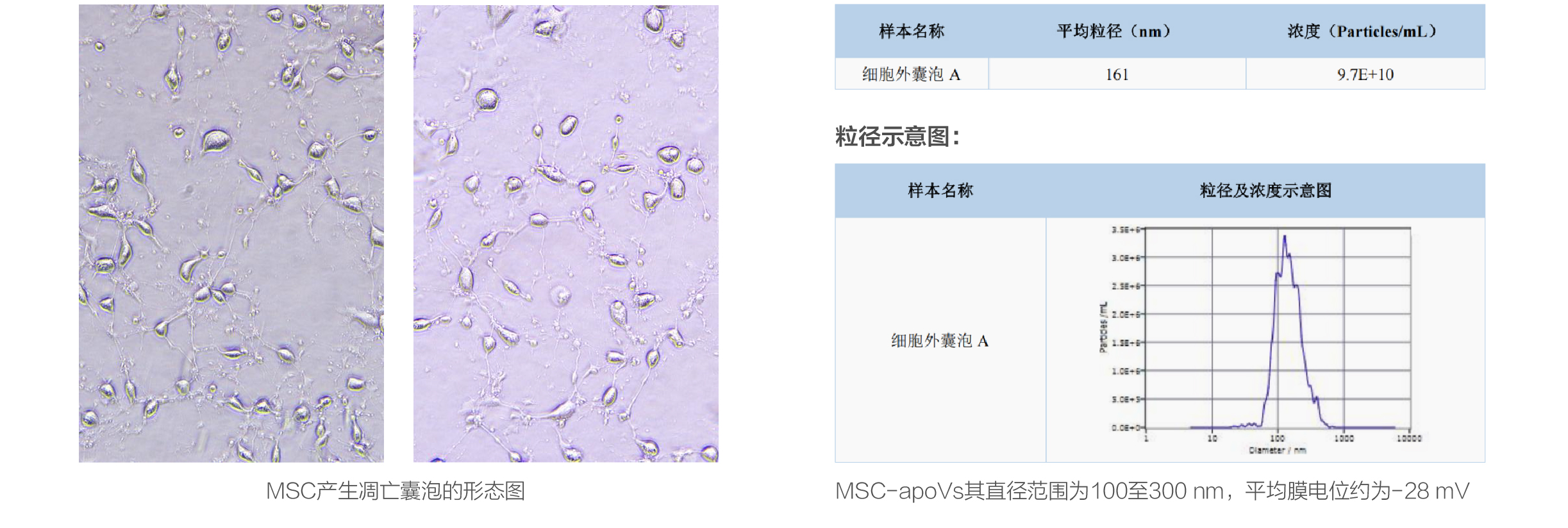 凋亡囊泡(Apoptotic vesicles, apoVs)属于细胞外囊泡的一种,细胞外囊泡是人体中广泛存在并具有功能活性的纳米级双层脂质结构,在多种生理过程中扮演重要角色,在生理状态下,细胞外囊泡可分为外泌体、微囊泡以及细胞凋亡时释放的凋亡囊泡。我们在人间充质干细胞来源凋亡囊泡的研究证实,它具有广泛的生物学效应和潜在的治疗效应。相比于MSCs,apoVs为非细胞制剂,无成瘤风险、低免疫原性等优势,具有更广泛的应用前景。