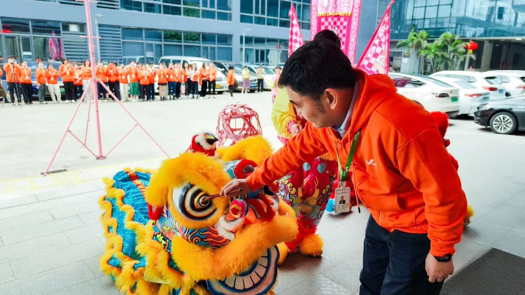 鼓乐齐鸣,热闹非凡,威武霸气的舞狮活灵活现进行了精彩的表演,“金鼓一响黄金万两、金狮点睛富贵繁荣”进入点睛仪式,王进辉总经理亲自为狮子点睛预示着唯泰生物新一年,迎来充满朝气与活力的开端,财源滚滚,平安纳福。
