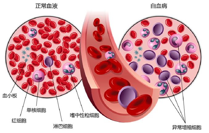 (正常血液和白血病血液对比图)