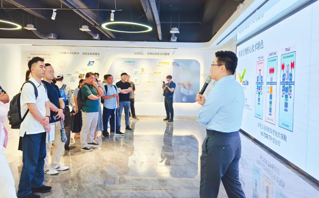 唯泰生物副总经理许峻荣博士带领校友代表团参观了唯泰生物细胞科技科普展厅,对公司的发展历程、细胞科技、细胞制备与存储、细胞医药研发与临床应用研究进展等情况进行了精彩介绍,深入解析了当前生物医药产业的前沿技术,并对未来的发展趋势进行了展望。校友代表团亲眼目睹了唯泰生物的细胞制备环境和细胞库储存实力,纷纷表示赞叹不已。