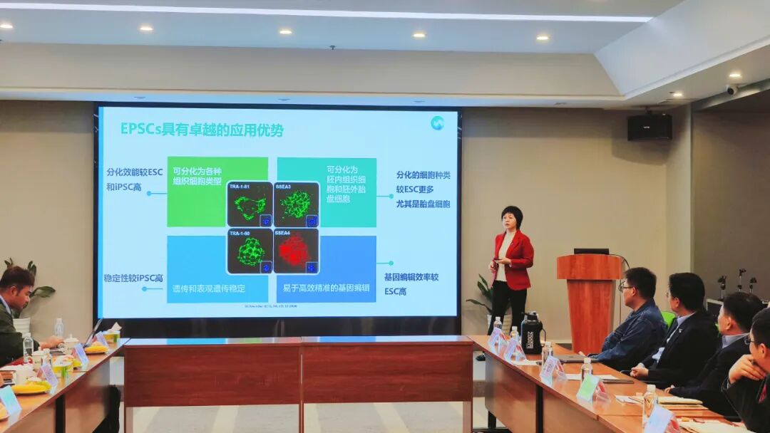香港大学干细胞转化研究中心杨树标教授团队向唯泰生物技术骨干详细介绍基于独创的新型扩展潜能干细胞(Expanded Potential Stem Cell)技术平台在药物开发、疾病研究和再生医学等研究方面所取得的创新成果。刘芳教授分享了EPSC技术平台的产业化优势及其在多个领域的应用场景,还特别强调了,EPSC技术平台不仅能够提供高质量细胞资源,结合精准基因编辑技术,能够为人民群众身体健康提供新的解决方案。阮德功博士作为Expo展能科技有限公司的负责人,详细介绍了EPSC培养体系的关键技术要点,他强调了该体系在实现细胞高效培养和应用方面的创新性和实用性,为再生医学和细胞治疗领域提供了新的技术平台。此外,刘雪艳博士还展示他们在免疫系统疾病治疗方面的最新案例,剖析了EPSC在未来疾病个性化精准化模型构建和药物筛选中的可行性。