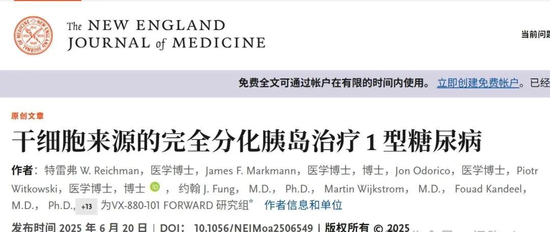 重磅干细胞案例:10名Ⅰ型重症糖尿病患者告别胰岛素超过12个月