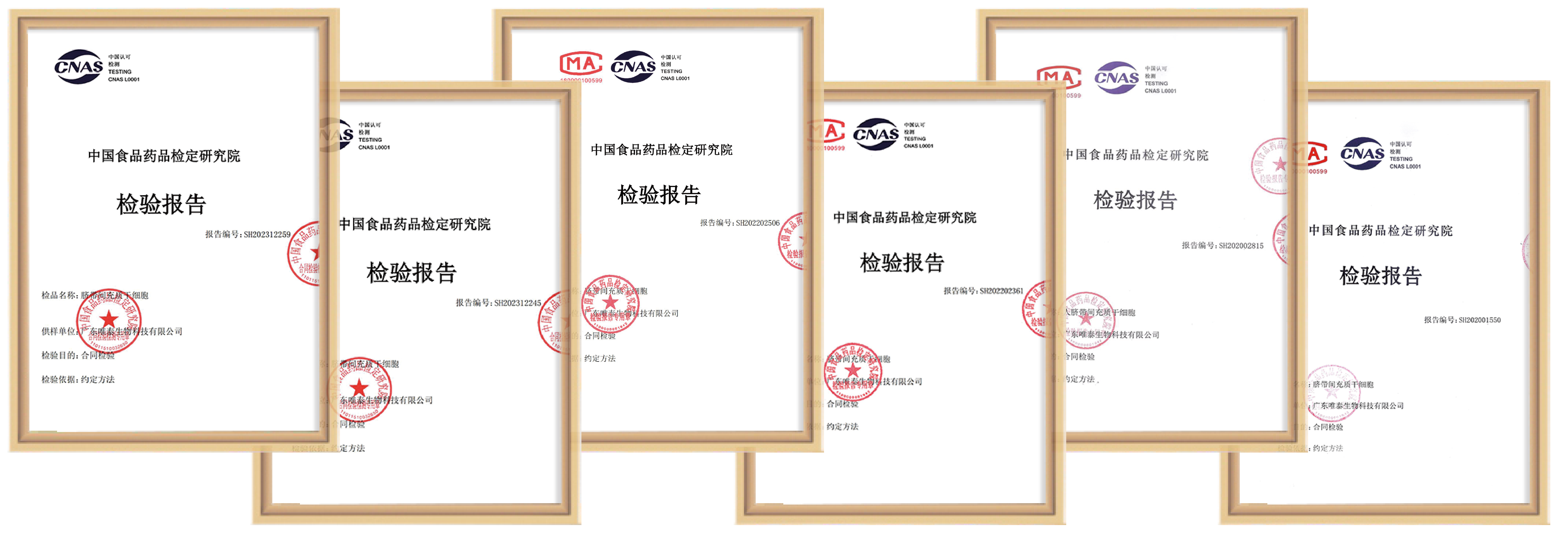 6批次的干细胞产品通过中国食品药品检定研究院质量复核,其生物学属性、微生物学安全性、生物学安全性和有效性均已达到临床应用安全的最高标准,可为科学研究和临床治疗提供高质量、有保障、可溯源的临床级干细胞。
