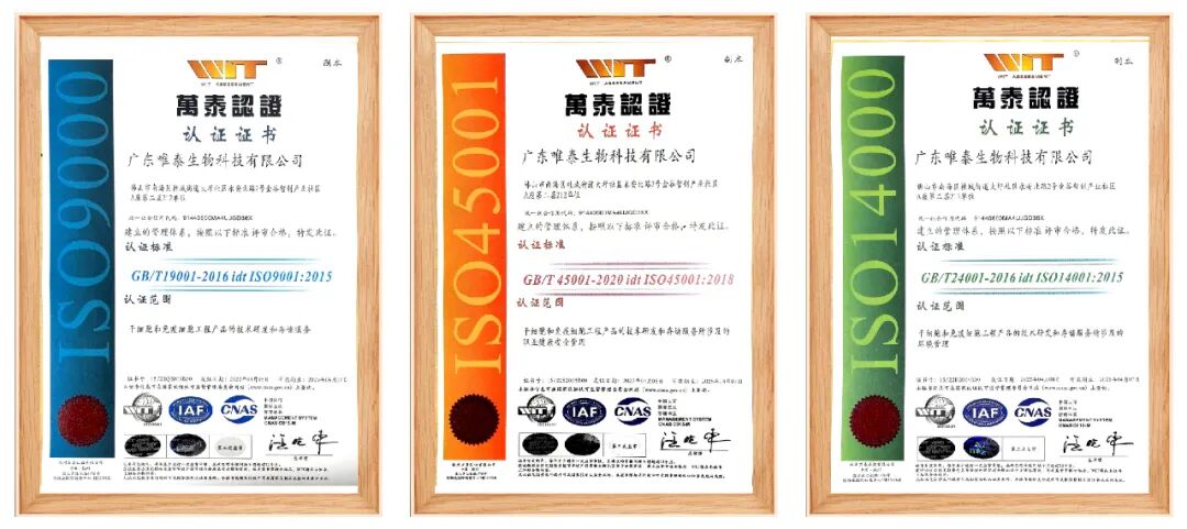 企业动态 | 唯泰生物顺利通过ISO9001、ISO14001、ISO45001三体系复审、GBT29490知识产权复审