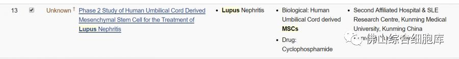 5,昆明医科大学第二附属医院和北科于2012年2月开始了一项“人脐带间充质干细胞治疗狼疮性肾炎研究”的Ⅱ期临床试验。